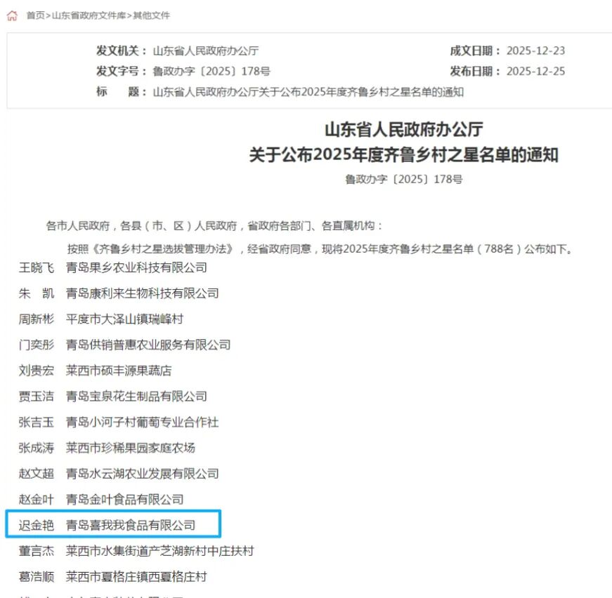 近日,山东省人民政府办公厅公布2025年度"齐鲁乡村之星"名单。莱西花饽饽制作技艺非遗传承人、青岛喜我我食品有限公司负责人迟金艳成功入选,这是莱西市非物质文化遗产保护传承工作取得的又一重要成果,彰显了莱西非遗工作与乡村振兴战略的深度融合成效。