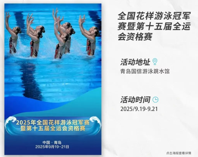 2025年全国花样游泳冠军赛暨第十五届全运会资格赛是国内花游项目竞技水平最高、影响力最大的年度赛事之一,作为国家体育总局游泳中心主办的重要品牌赛事,历年来汇聚了全国优秀花游运动员,包括多位世界冠军、奥运冠军和国家队主力选手参赛,代表了当前我国花游运动发展的最高水平。预计有180余名运动员、教练员、裁判员来青参赛,全国顶级优秀花游选手、奥运会冠军冯雨、常昊、张雅怡、向玢璇、王柳懿、王芊懿,世锦赛冠军徐汇妍、程文涛、李岫宸、林彦君、林彦含、戴诗意都将悉数到场。