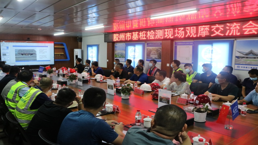 8月23日,胶州市住建局在中铁建工集团上合国际会议中心项目组织召开“技术能力提升,基桩检测先行”主题基桩现场检测观摩技术交流会。胶州监督站站长张鹏程、莱西监督站副主任于建荣、青岛市建筑工程检测检定中心专家刘世伟、青岛理工大学专家马振国以及全市13家检测机构、7家基桩检测机构代表等60余人参加了此次观摩会。