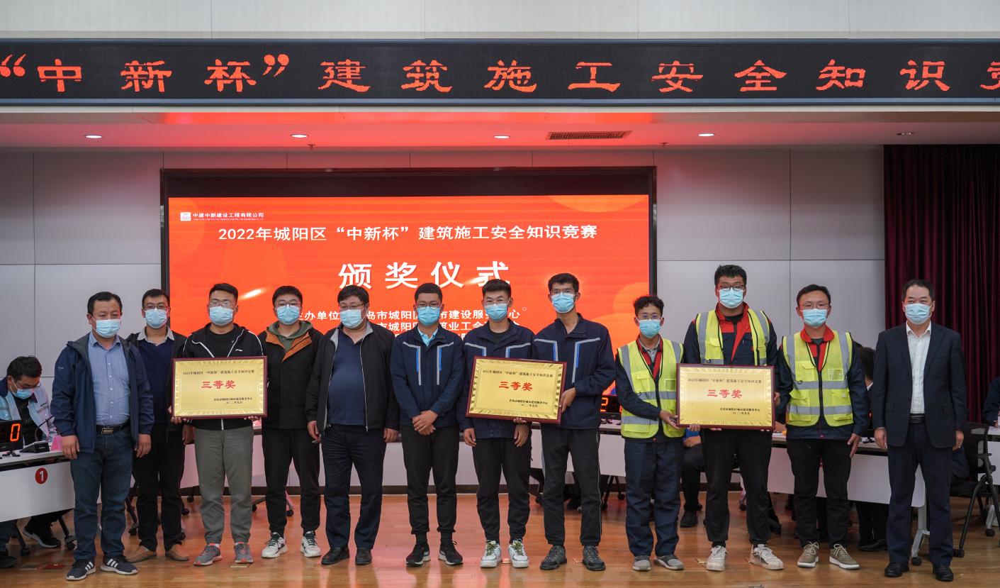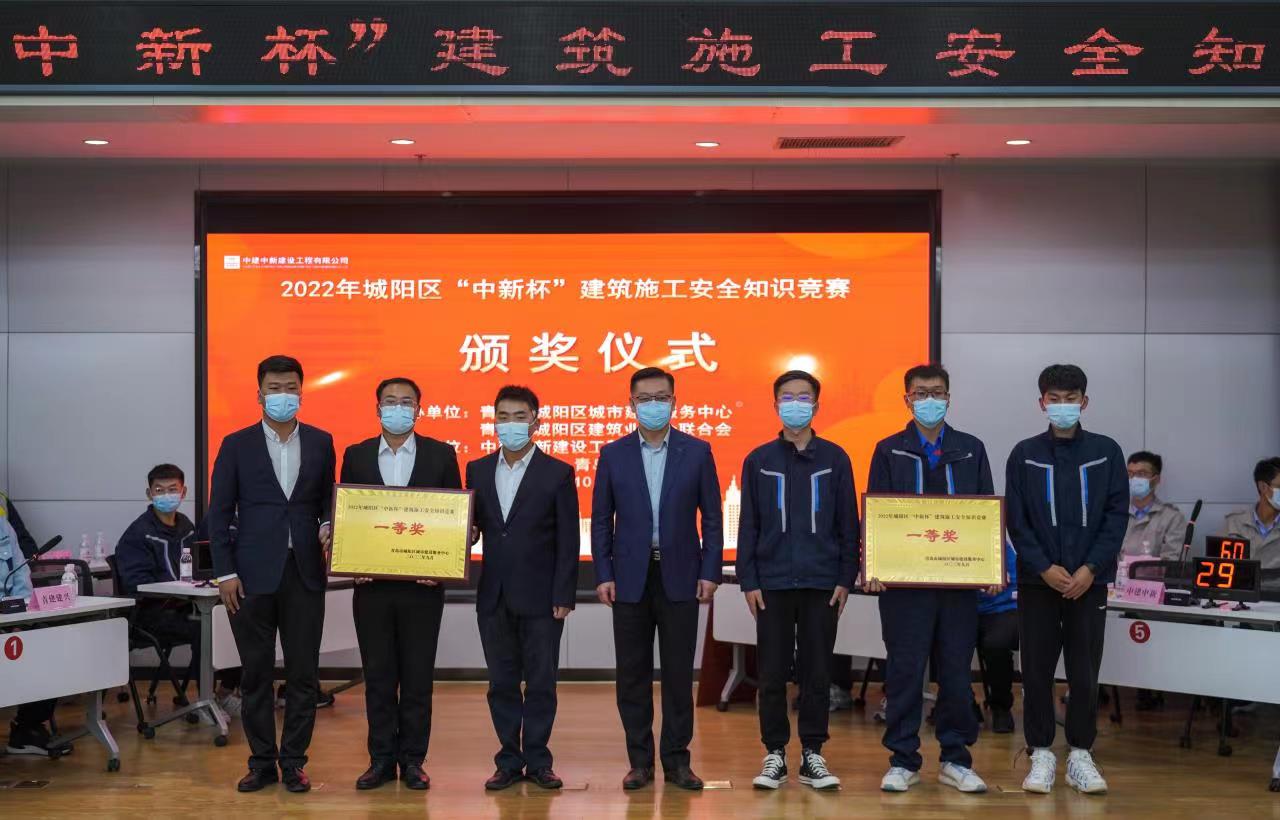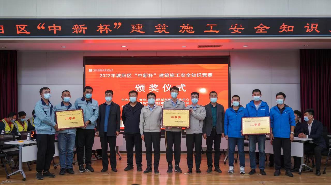 10月14日下午,青岛城阳区2022年“中新杯”建筑施工安全知识竞赛决赛顺利落下帷幕,本次活动由青岛城阳区城市建设服务中心和青岛城阳区建筑业工会联合会主办、中建中新建设工程有限公司承办。城阳区住房和城市建设管理局副局长曲遵,城阳区城市建设服务中心、中建中新建设工程有限公司相关领导出席活动并为获奖单位颁奖。